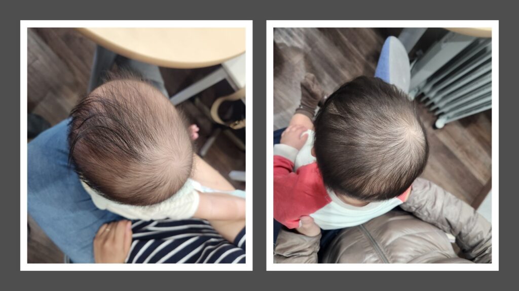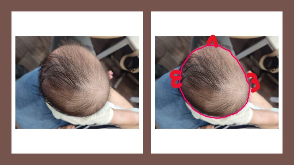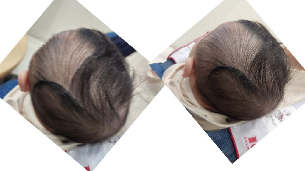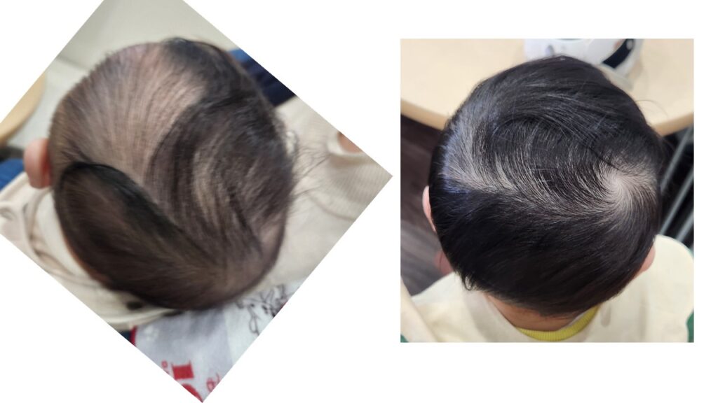 4ヶ月の治療で、かなり頭の形は改善しました。過去と比較するとかなりきれいになったのがわかります。